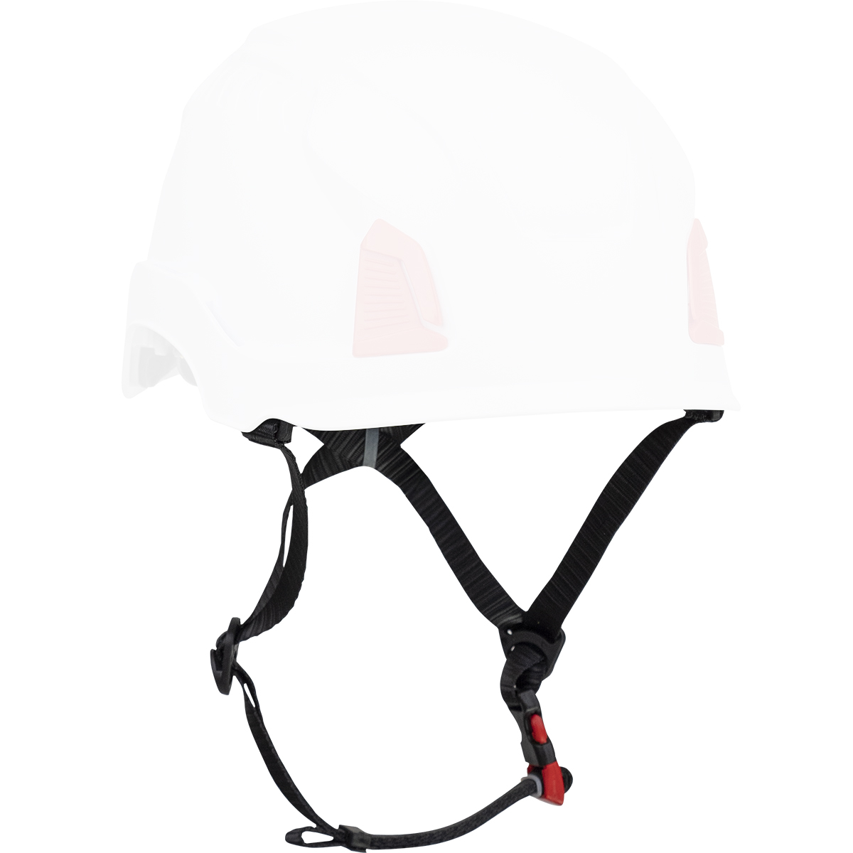 Replacement durable 4-point chin strap clips into hard hat shell for added safety for working at heights.