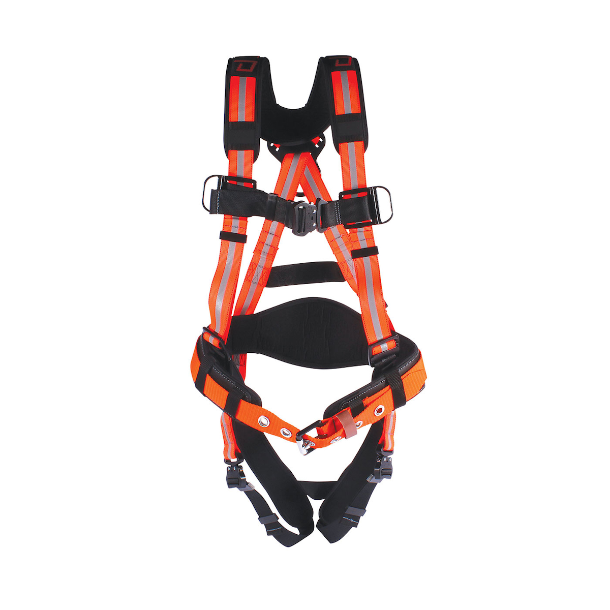 Hi-Visibility H-Style Full Body Harness with Aluminum Hardware, Integrated Padding & Tool Belt, Lumbar Support and 5 Points of Adjustment - CSA Class A