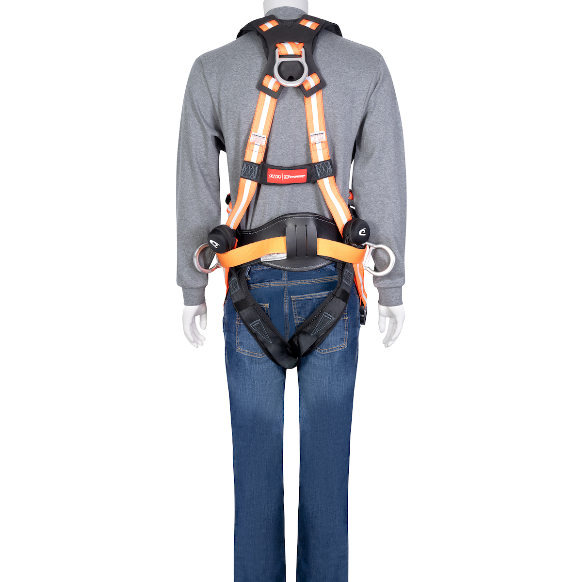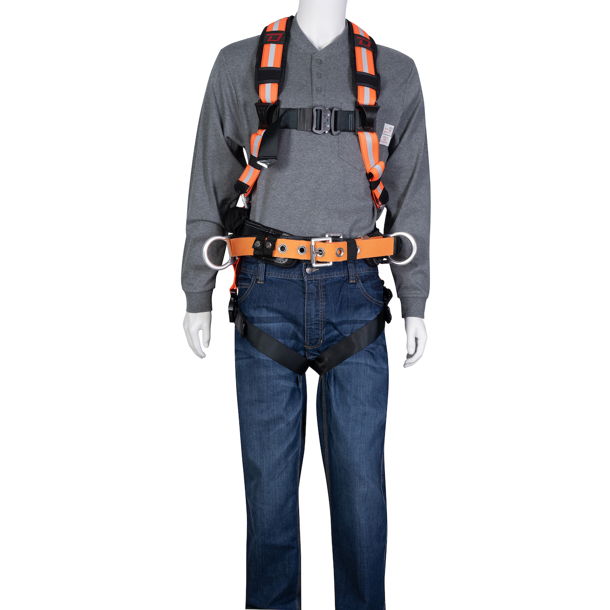 Hi-Visibility H-Style Full Body Harness with Aluminum Hardware, Integrated Padding & Tool Belt, Lumbar Support and 5 Points of Adjustment - CSA Class A / P