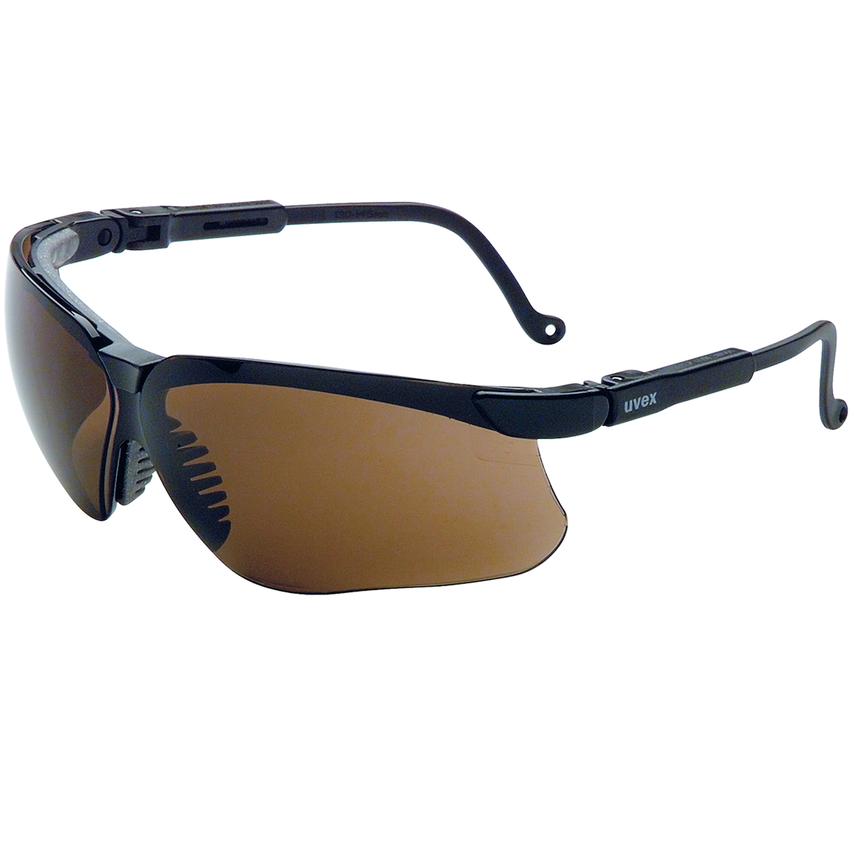 Gafas de seguridad semi-sin montura con montura negra, lente espresso y recubrimiento antiempaña hidroescudo®