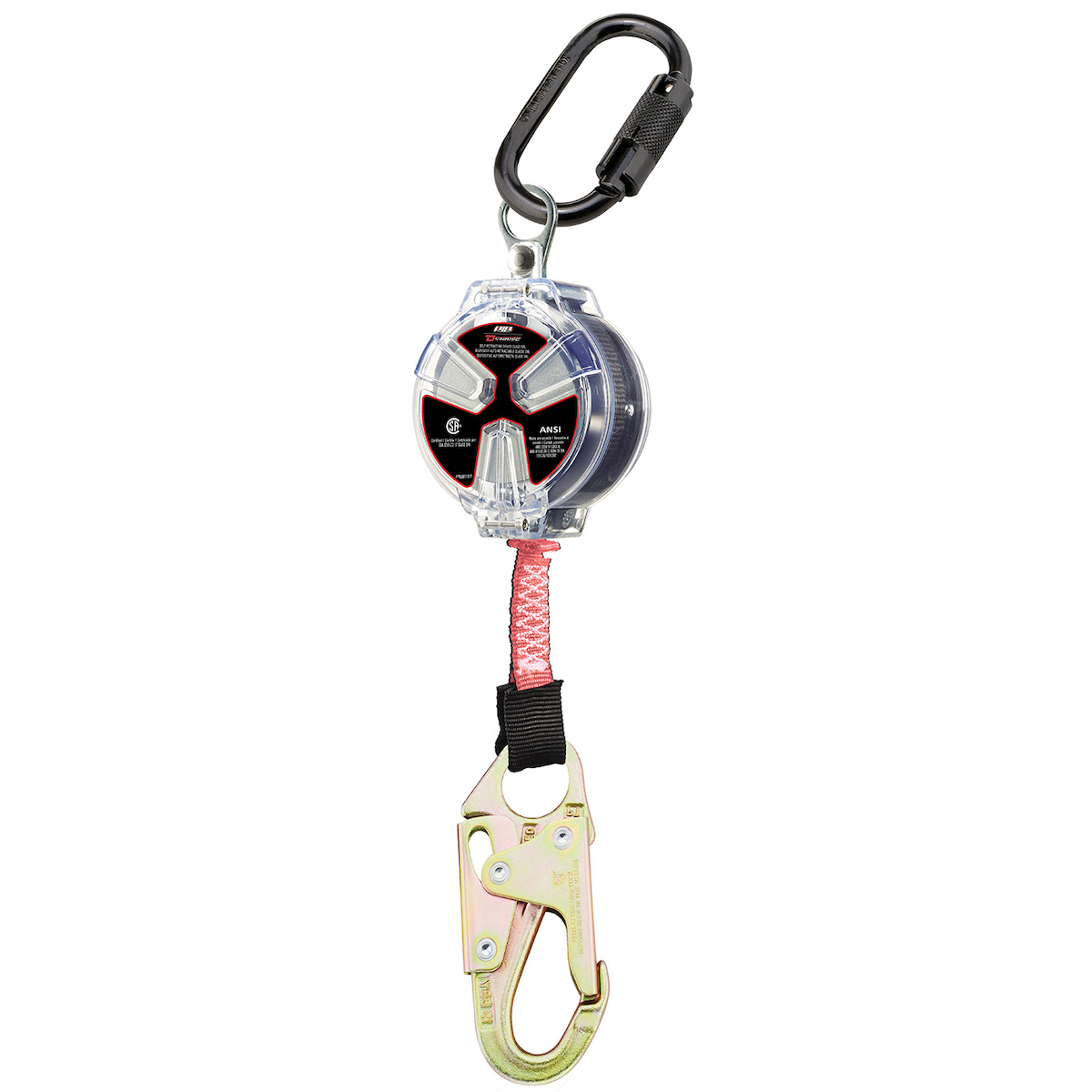 Línea de vida autorretráctil con correas CSA Class SRL, con mosquetón de triple acción y gancho de seguridad pequeño - 6' (1,8 m)