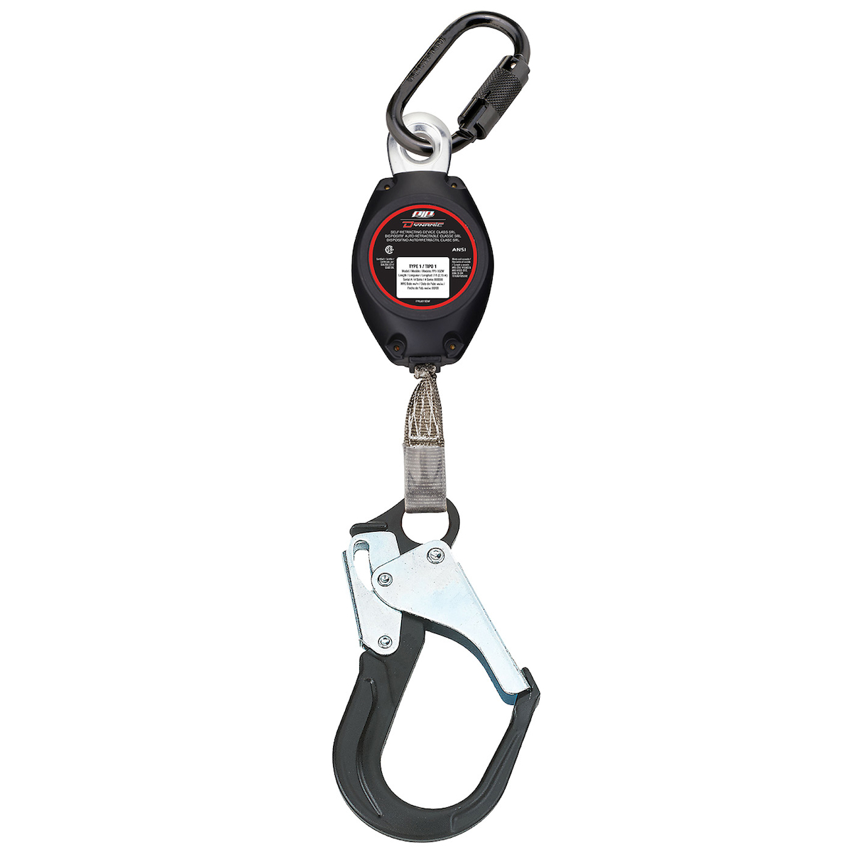 Línea de vida autorretráctil con correa CSA Class SRL, con mosquetón de triple acción y mosquetón grande de aluminio - 7' (2,1 m)