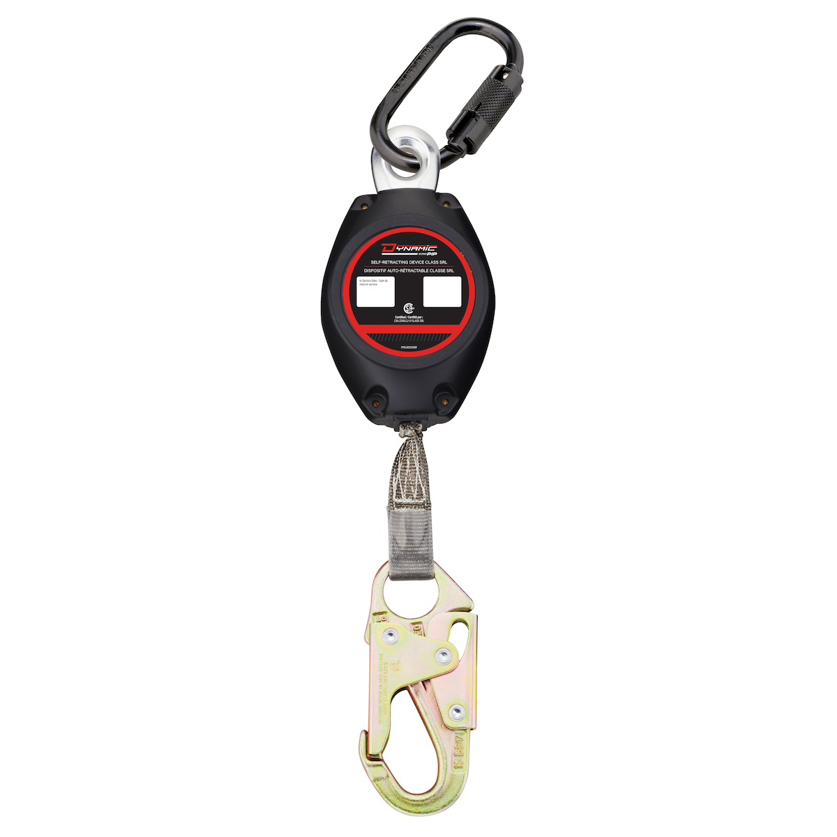 Línea de vida autorretráctil con correas CSA Class SRL, con gancho de seguridad pequeño y mosquetón de triple acción - 11' (3,4 m)